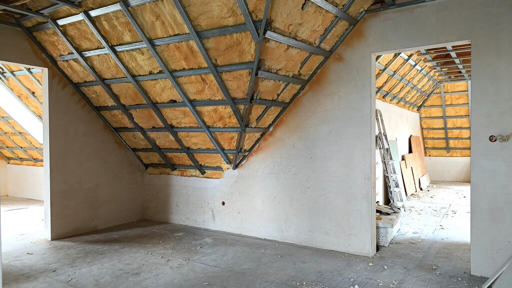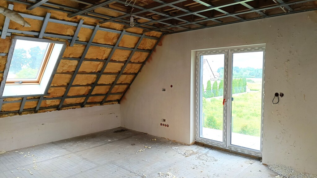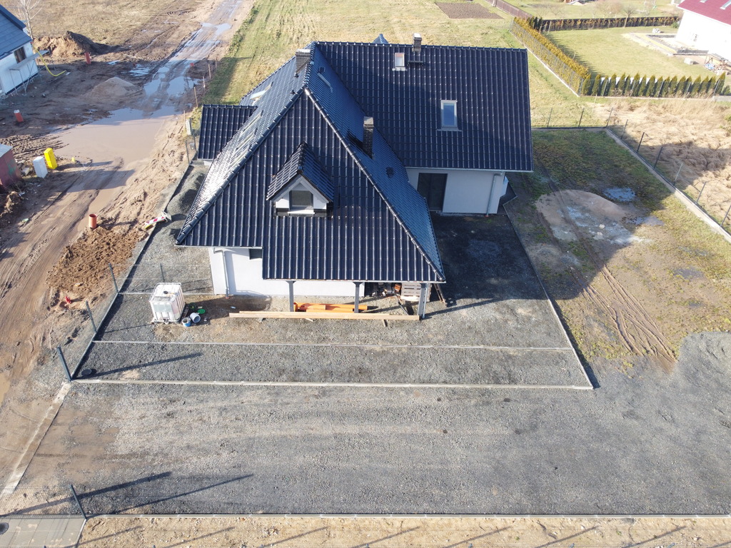 - budynek znajduje się w stanie do wykończenia, posiada wykonane tynki, elewację, ocieplenie dachu pianą PUR,