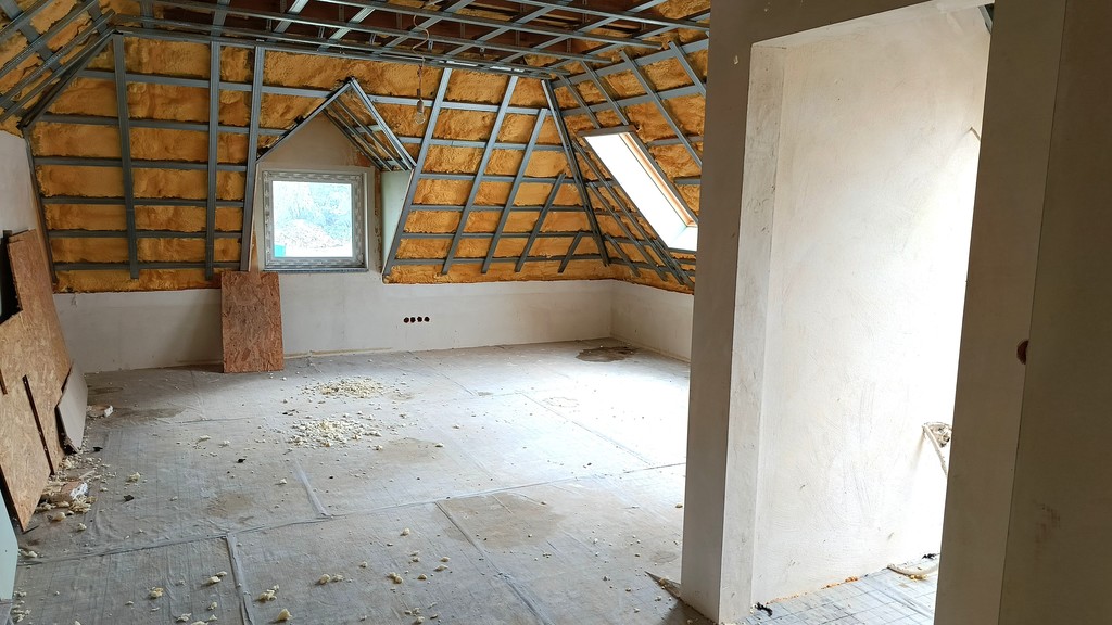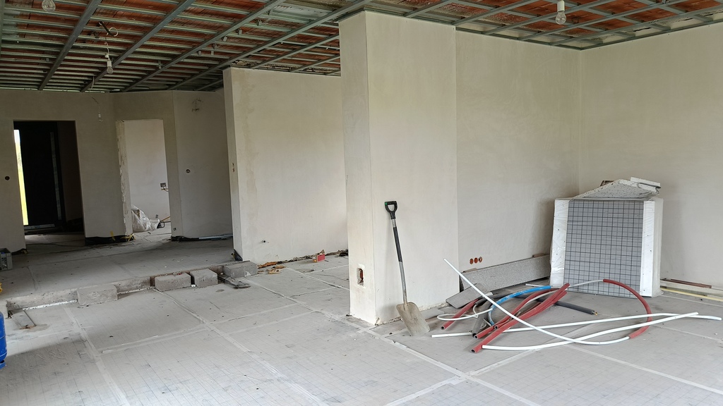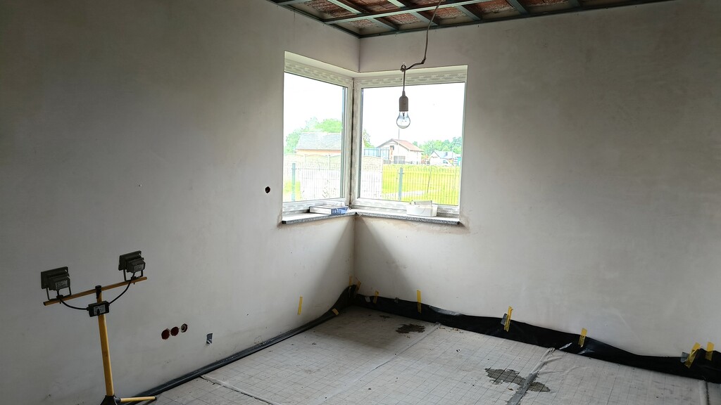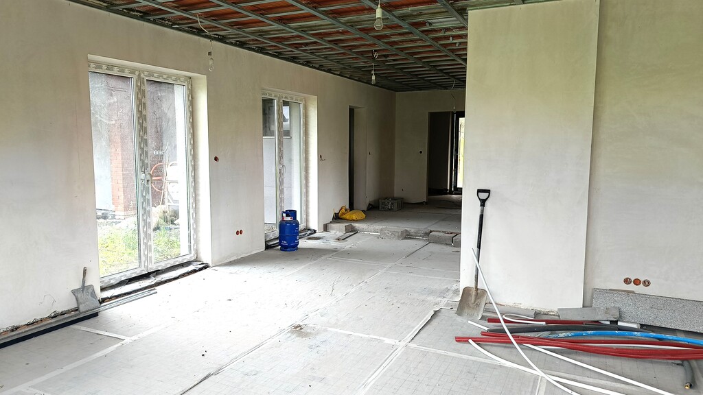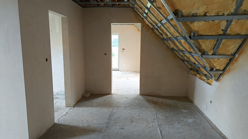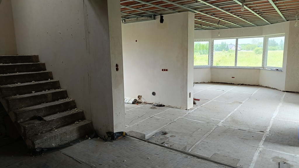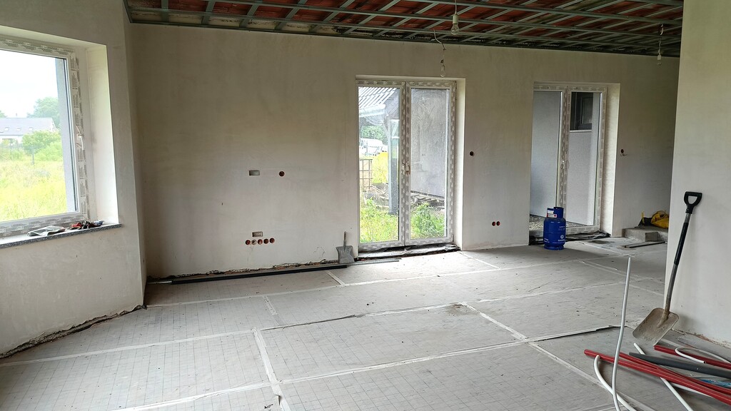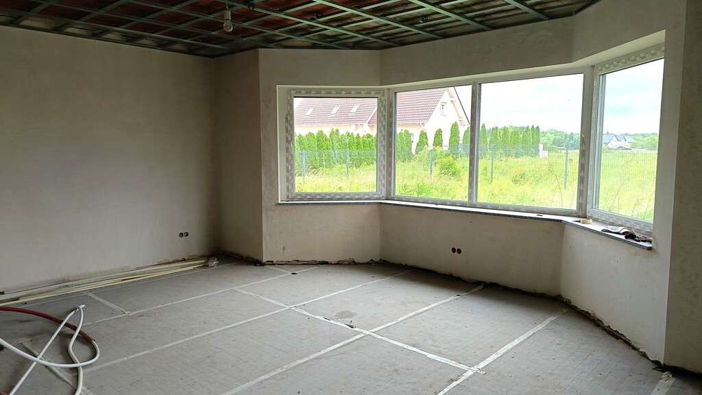 - wewnątrz zostało wykonane przygotowanie pod położenie ogrzewania podłogowego ( gazowe lub pompa ciepła)