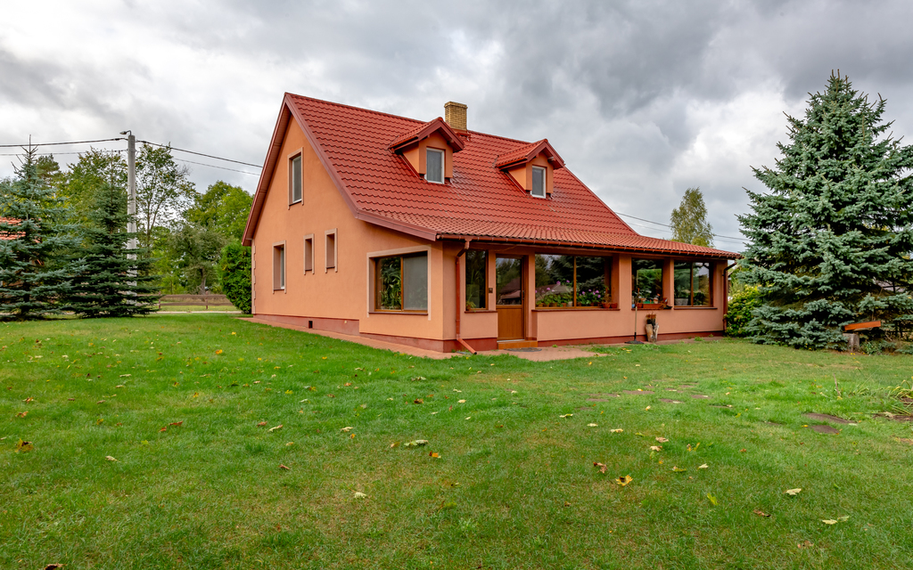 Dom kryty blachodachówką - solidne pokrycie dachu.