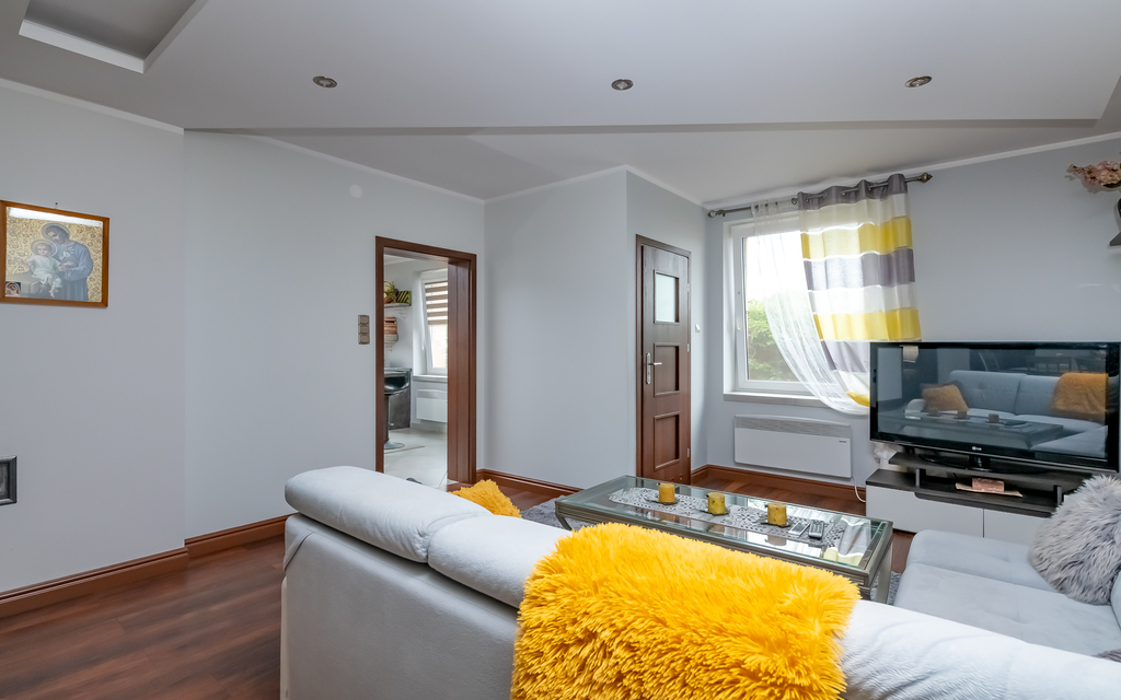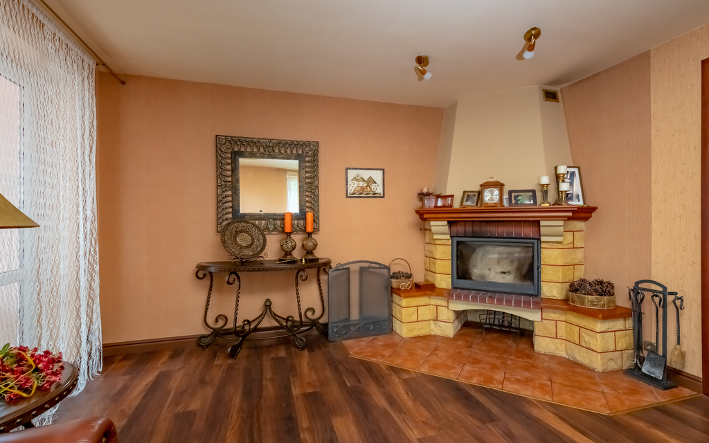 Ogrzewanie kominkiem z rozprowadzeniem na wszystkie pomieszczenia, oraz grzejniki elektryczne - komfort w każdym sezonie.
