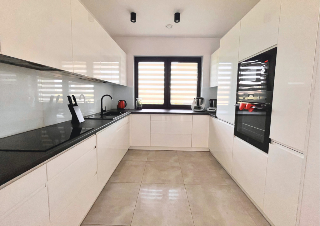 •    Kuchnia wyposażona w zabudowę na wymiar w wysokim standardzie wykonania z ukrytą spiżarnią.