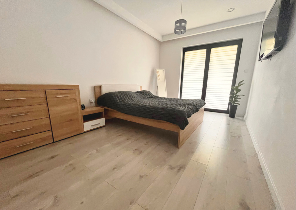•   Dużej małżeńskiej sypialni (15m2) z garderobą. Duże okna skierowane na zachód, z możliwością wyjścia na taras.