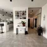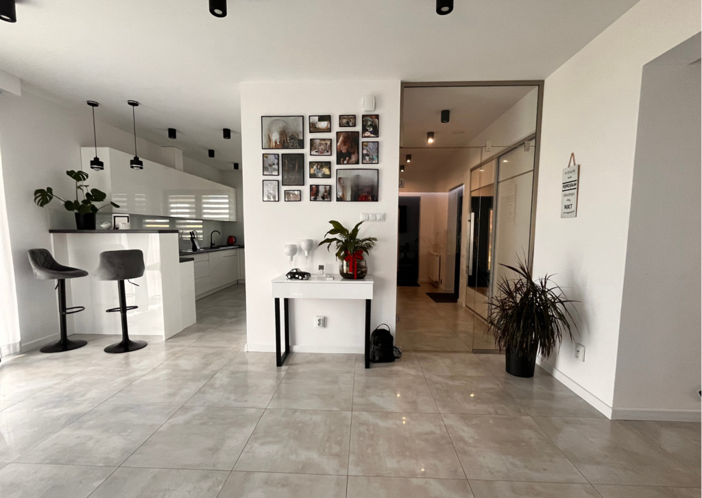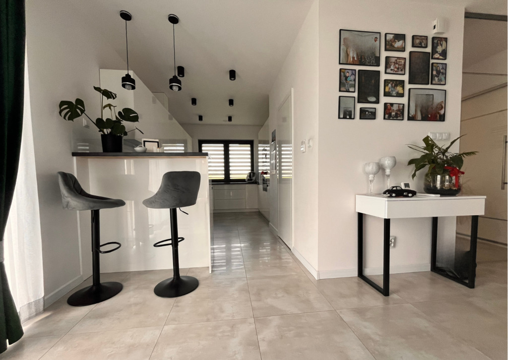 •    Wiatrołap oddzielający część techniczną od dziennej stylowymi, przeszklonymi drzwiami zapewniającymi izolację termiczną.