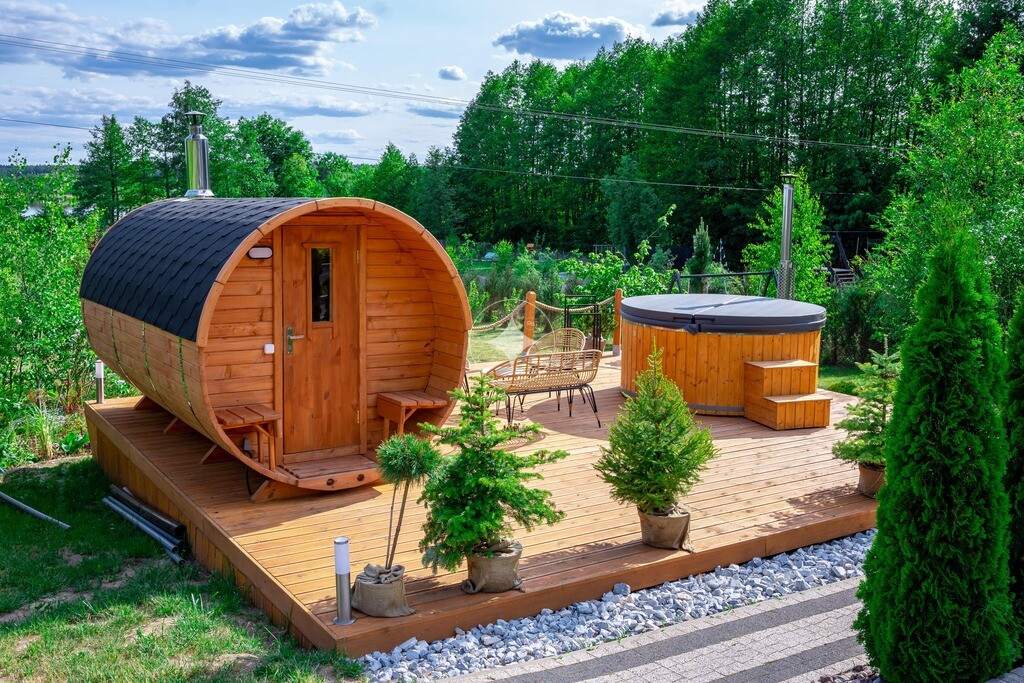 Znajduje się na niej jacuzzi oraz sauna. Nie brakuje też boiska do gry w siatkówkę oraz placu zabaw.