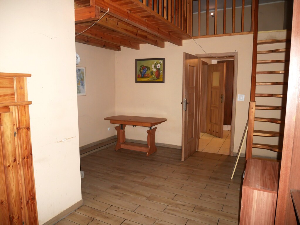 - poddasze, na którym wygospodarowano 3 pokoje, kuchnię i łazienkę
