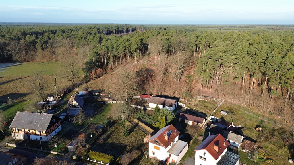 - nieruchomość jest położona przy drodze asfaltowej, przy lesie
