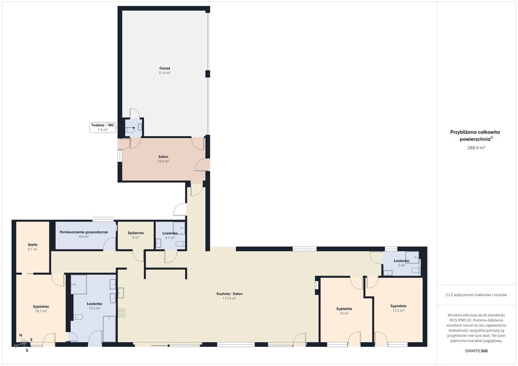 - Sypialnia główna o powierzchni 18.1m2 z własną garderobą (9.1m2) oraz łazienką