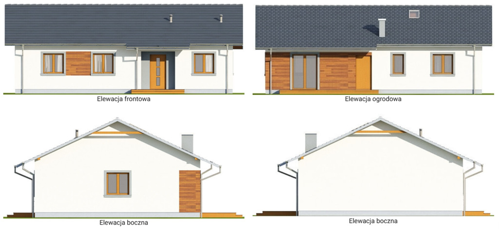Brak schodów sprawia, że dom jest funkcjonalny zarówno dla rodzin z dziećmi, jak i osób planujących komfortowe użytkowanie na długie lata.