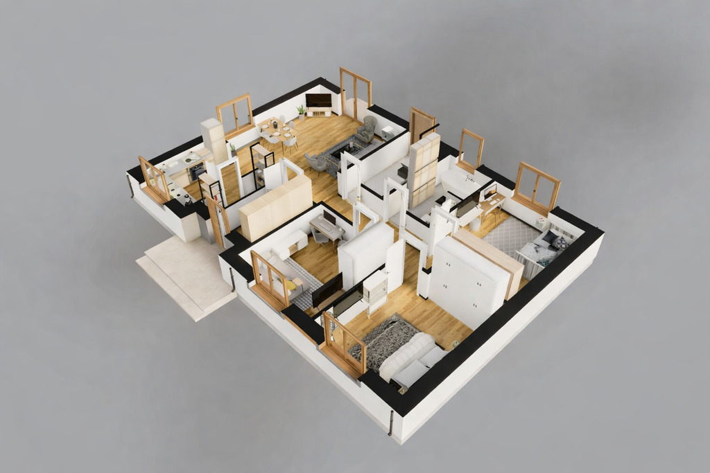 Przedstawione wizualizacje i grafiki mają charakter wyłącznie poglądowy i stanowią wyłącznie materiał pomocniczy, ułatwiający zorientowanie się w ogólnym wyglądzie oferowanej nieruchomości.