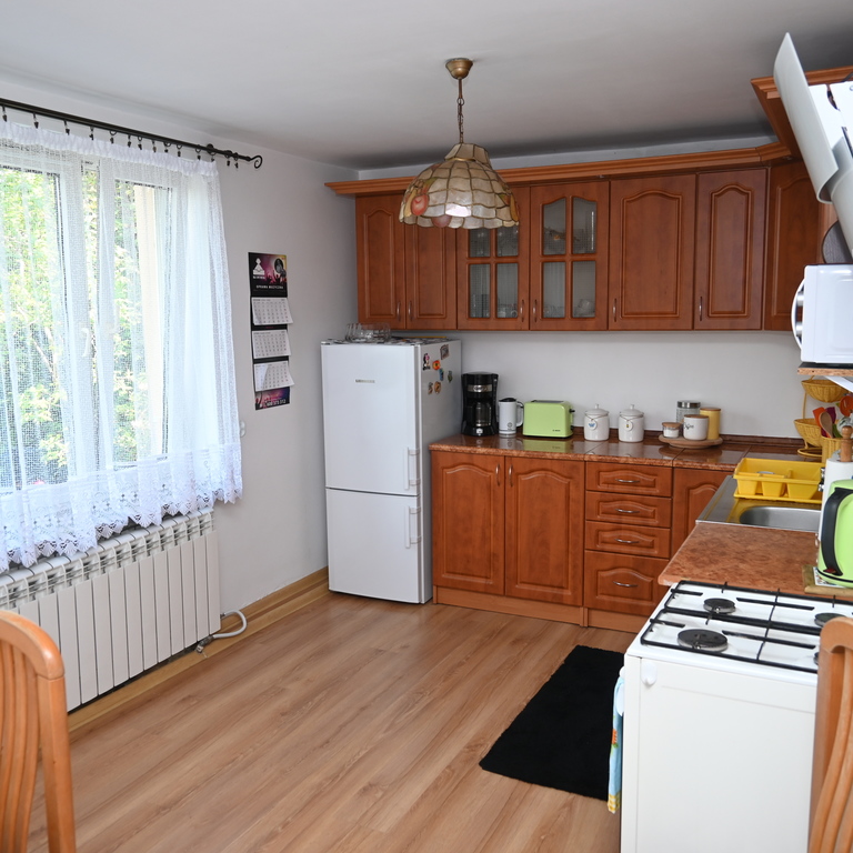 Konstrukcja budynku – tradycyjna murowana , ściany ceramiczne, więźba dachowa drewniana pokryta blachą trapezową . Dom jest zadbany i gustownie umeblowany ( kuchnia posiada meble w zabudowie z pełnym wyposażeniem AGD ). Bardzo korzystny rozkład pomieszczeń z podziałem na strefą dzienną, nocną i rekreacyjną ułatwia aranżacje i daje duże możliwości wykorzystania w celach komercyjnych np. pod wynajem.
