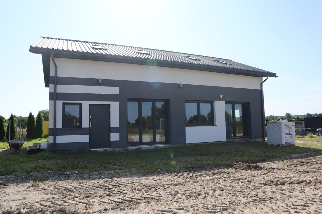 Budynek wybudowany z wysokiej jakości materiałów, ocieplony zewnętrznie styropianem, elewacja wykonana z tynku silikonowego. Dach kryty blachą. Gotowe szambo przygotowane do podłączenia.