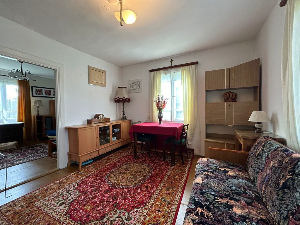 Przestronny dom z 3 sypialniami, 1 łazienką, dużym salonem i pomieszczeniami dodatkowymi, idealny dla rodziny lub osób poszukujących spokoju i przestrzeni. Jeden pokój ma możliwość przekształcenia w kuchnię. Na ten moment kuchnia znajduje się w oddzielnym budynku.