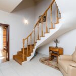 - hall z klatką schodową, na podłodze gres, schody dębowe.
