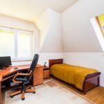 - sypialnia o pow. 11,9 m2, ekspozycja wschodnia, z dużym oknem dachowym z roletą, podłoga dębowa, klimatyzacja, duże narożne biurko robione na zamówienie.