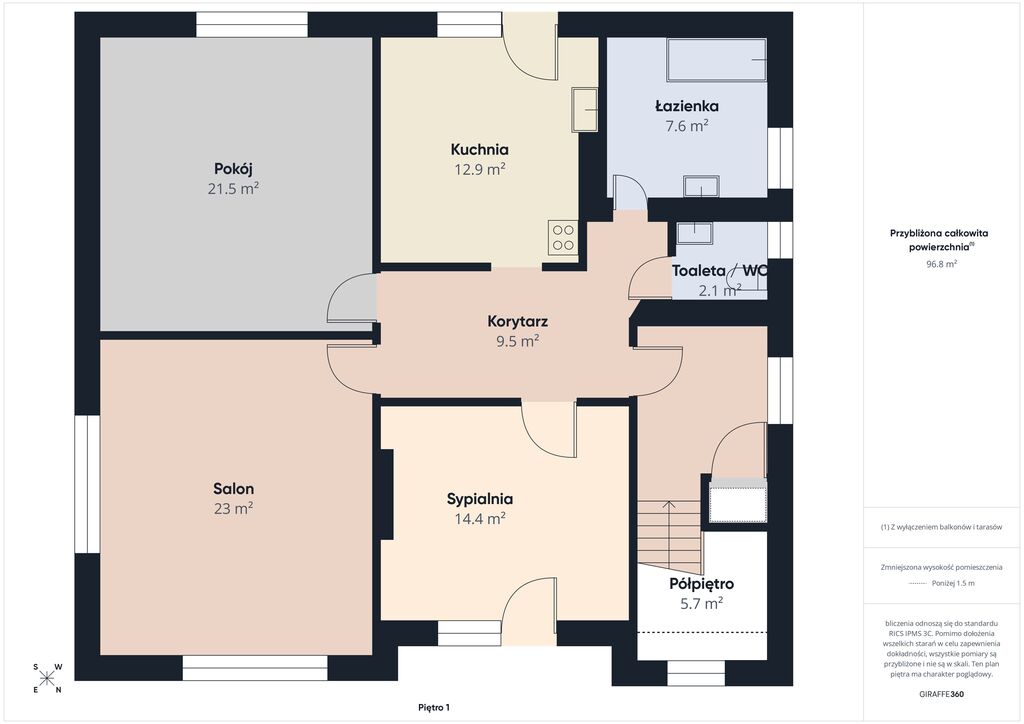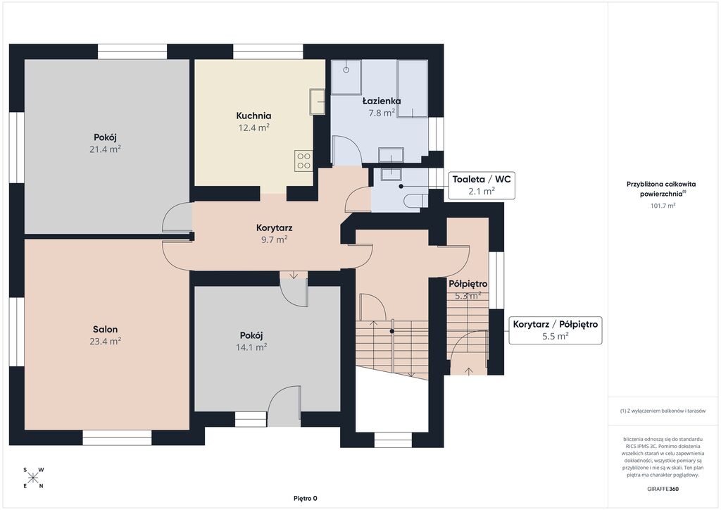 - łazienka: 7,8 m²