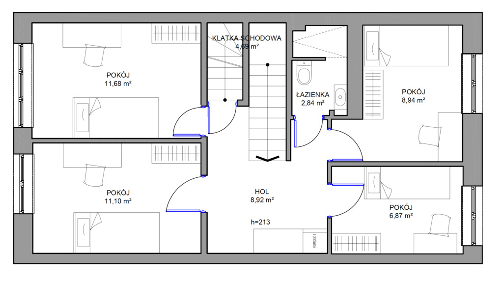 - 4 POKOJE 11,68 m2, 11,10 m2, 8,94 m2, 6,87 m2;