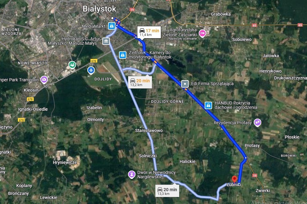 Zlokalizowane jedynie 4,8 km od Białegostoku, szybki dojazd drogą S19, ostatni kilometr wygodną drogą asfaltową o szerokości 9m.