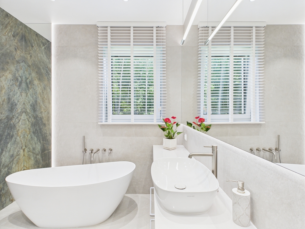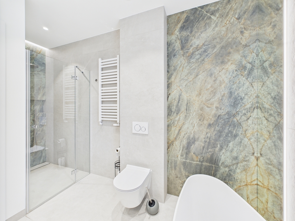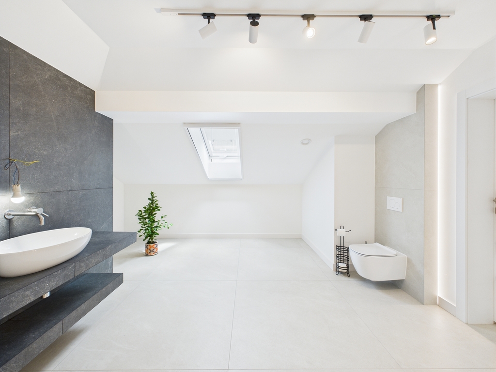 - duża łazienka z toaletą oraz miejscem na wolnostojącą wannę