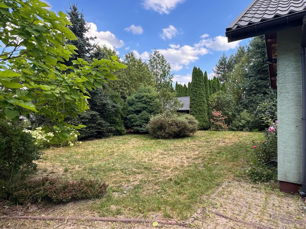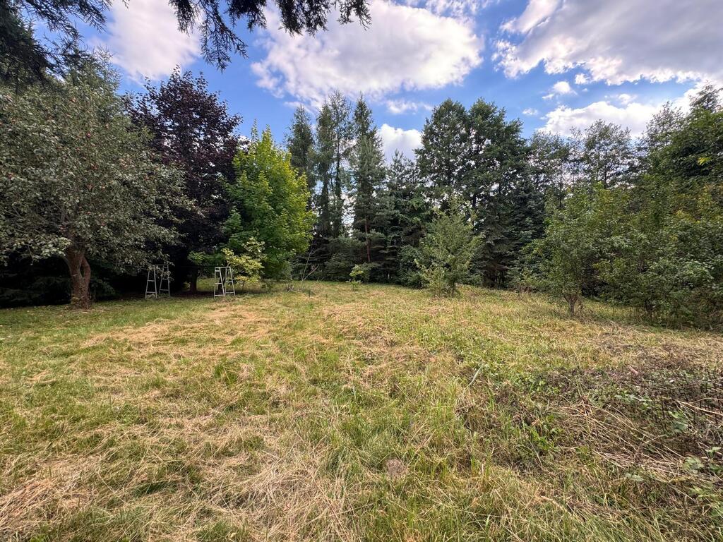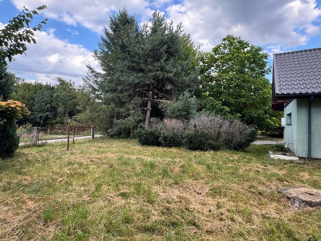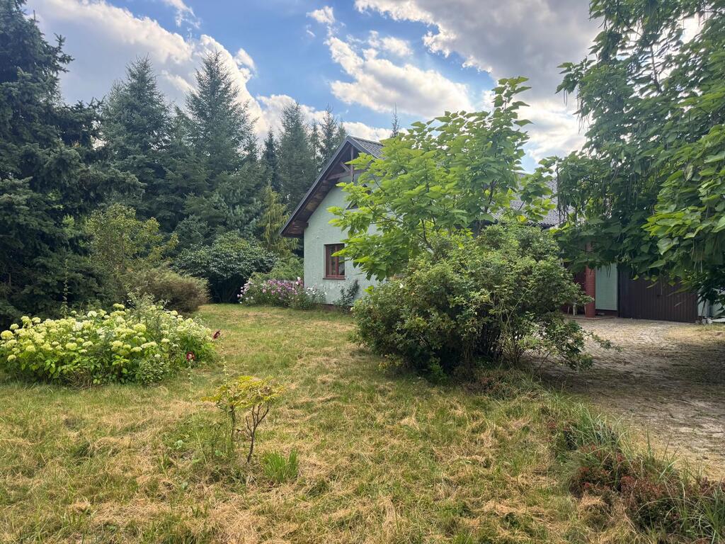 Działka 4100 m/2 , dużo zieleni kwiatów oraz drzew owocowych .