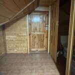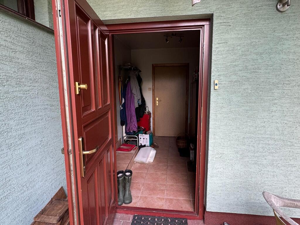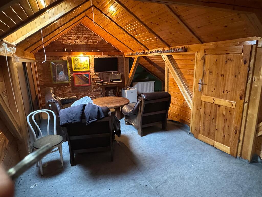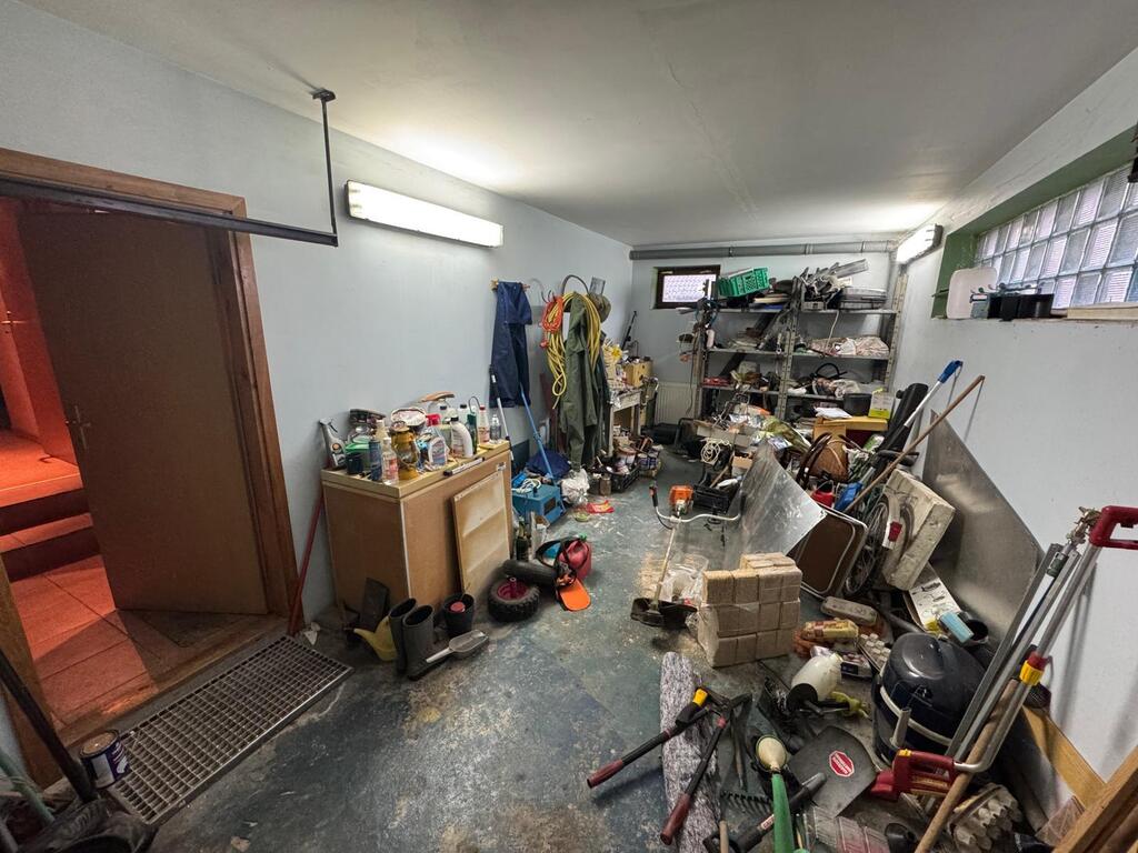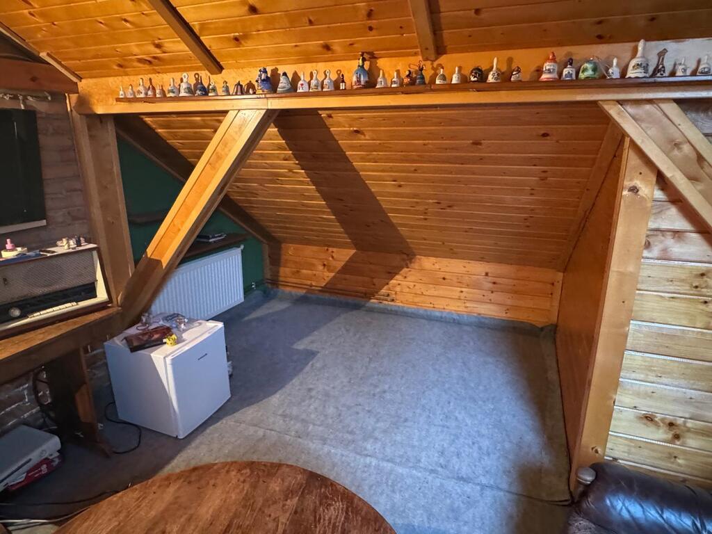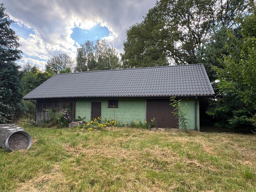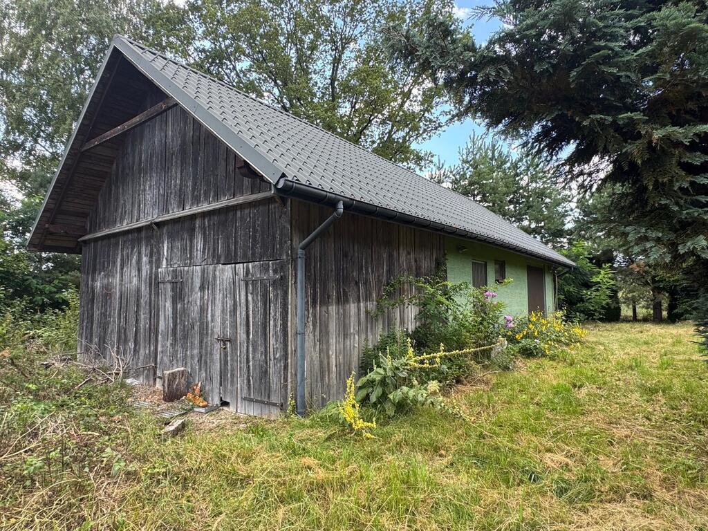 Na podwórku znajduje się duże pomieszczenie gospodarcze .