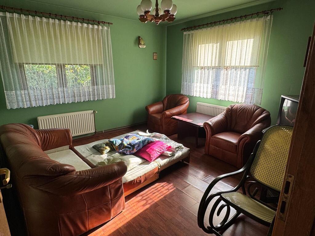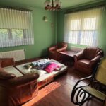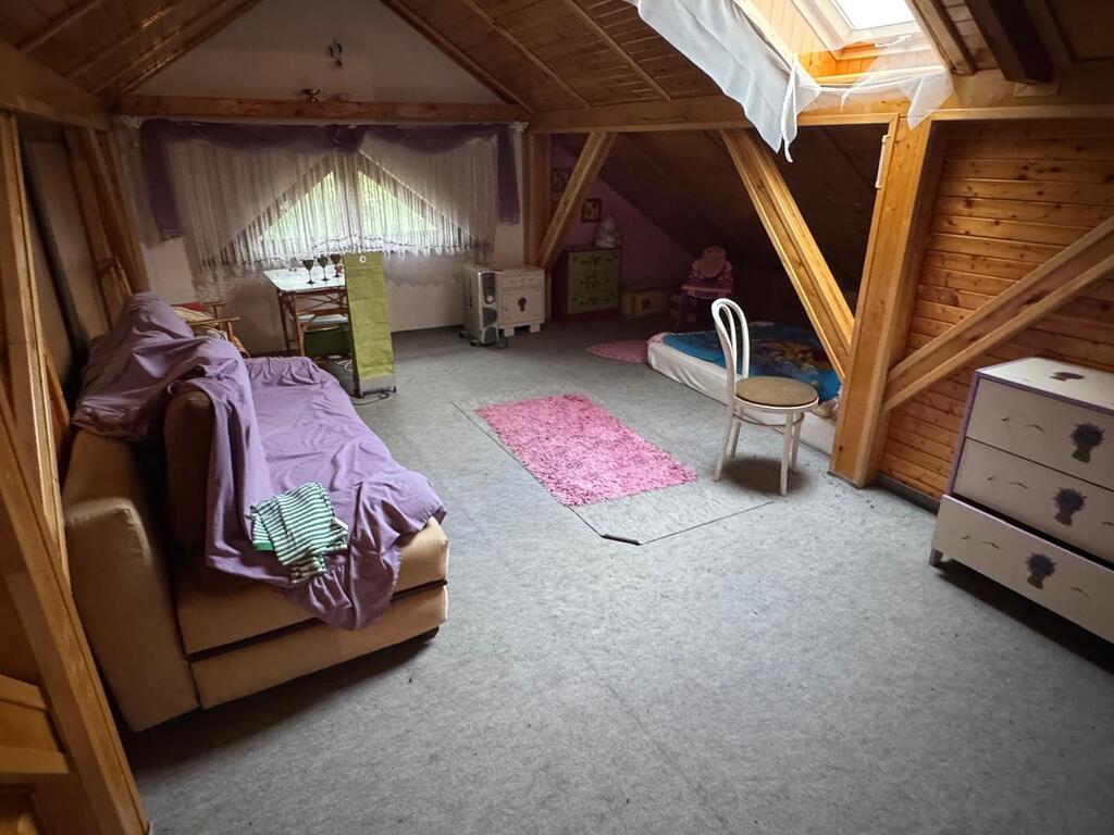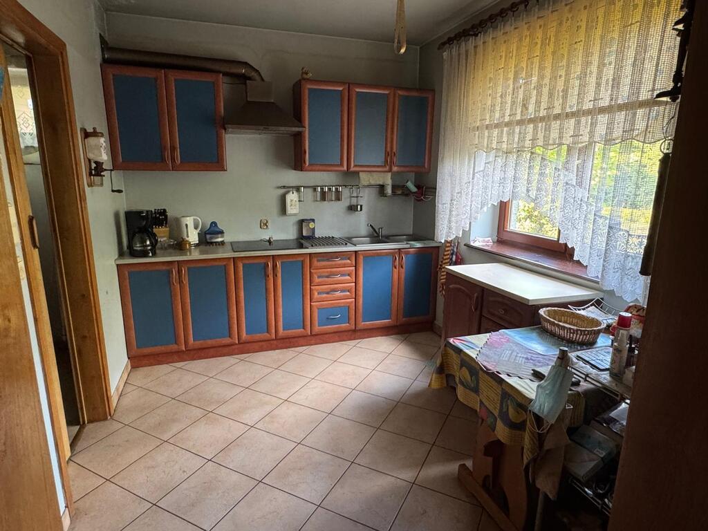 Dom jest gotowy do wprowadzenia , posiada dwie toalety , kuchnię , duży salon z kominkiem , 6 pokoi oraz dwa duże tarasy .