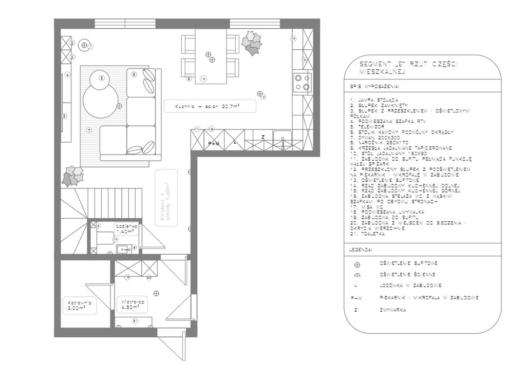 - pokój na parterze - dotyczy pierwszego, największego segmentu.