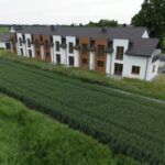 Domy w zabudowie szeregowej mają wykonaną elewację zewnętrzną z elementami dekoracyjnymi. Przed wejściem do segmentów zostaną wykonane drewniane pergole. Doda to atrakcyjności wizualnej budynkowi.