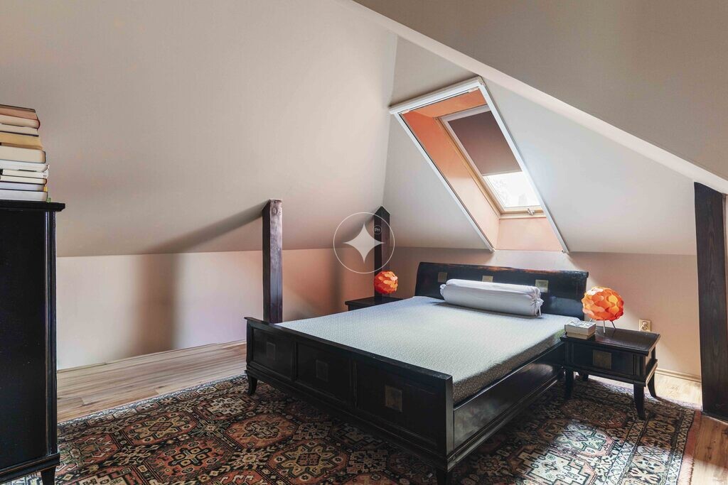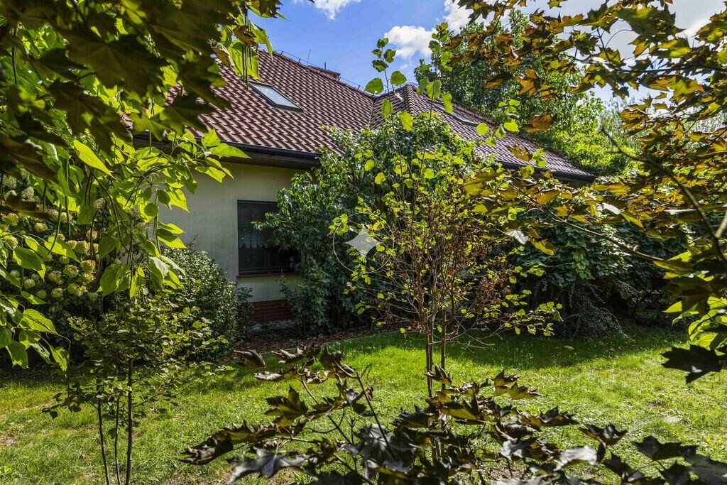 Na malowniczej, w pełni zagospodarowanej działce o powierzchni 1000 m² czeka na nowych właścicieli nietuzinkowy dom z 2004 roku. Budynek powstał w wysokim standardzie z użyciem szlachetnych materiałów, takich jak drewno egzotyczne czy drewniana zabudowa kuchni. Jego potencjał i wyjątkowy klimat czynią z niego prawdziwą perełkę na rynku.