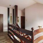 • Piętro: trzy sypialnie, w tym jedna z garderobą, łazienka.