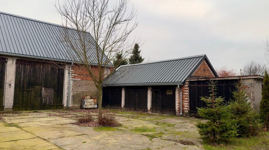 Na terenie znajdziesz dom mieszkalny, rozbudowane budynki gospodarcze (idealne na warsztat lub magazyn) oraz dużą stodołę