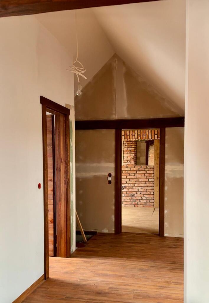 Nieruchomość z potencjałem. To miejsce może stać się Twoją prywatną oazą spokoju lub biznesem marzeń w agroturystyce. Dom jest po generalnym remoncie, umeblowana kuchnia z cudownym kuchennym piecem, drewniana podłoga, meble i drzwi. W domu znajdują się dwa komfortowe pokoje z osobnymi łazienkami i tarasami, oraz piękne użytkowe poddasze. Duża stodoła z nowym dachem idealnie nadaje się do przekształcenia w salę weselną, przestrzeń eventową lub galerię. Garaże i budynki gospodarcze dają wiele możliwości i adaptacji.
