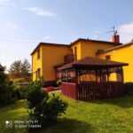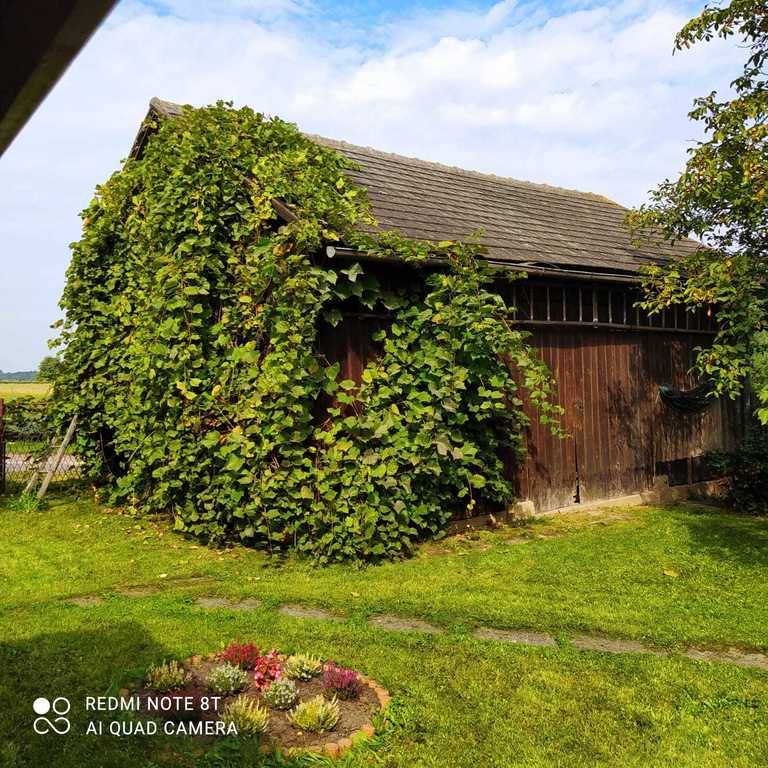 Dom dwukondygnacyjny o powierzchni mieszkalnej 144 mkw, z garażem, altaną, stodołą z piwnicą i budynkiem gospodarczym, na około 9 arowej bardzo zadbanej działce.