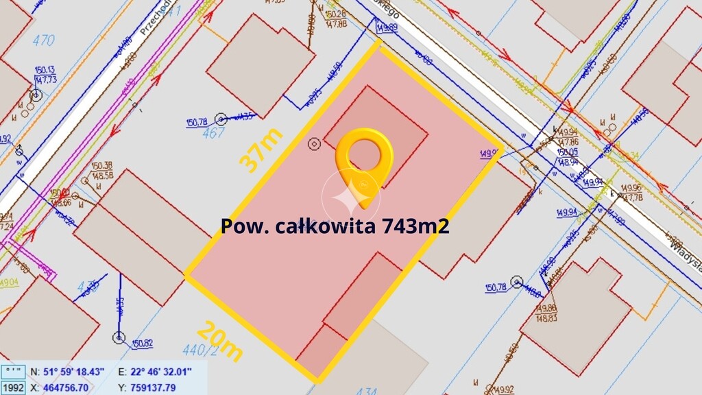 - działka o powierzchni 743 m²