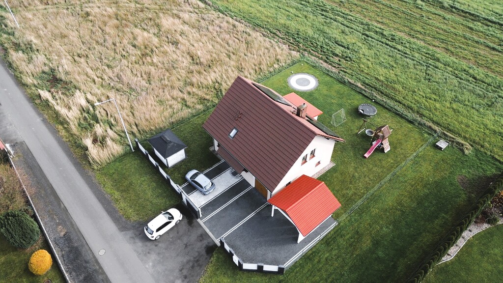 Dodatkowym atutem jest widok na Karkonosze w pogodne dni – dom położony na lekkim wzniesieniu.