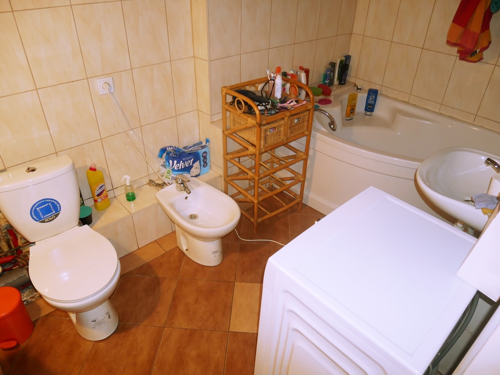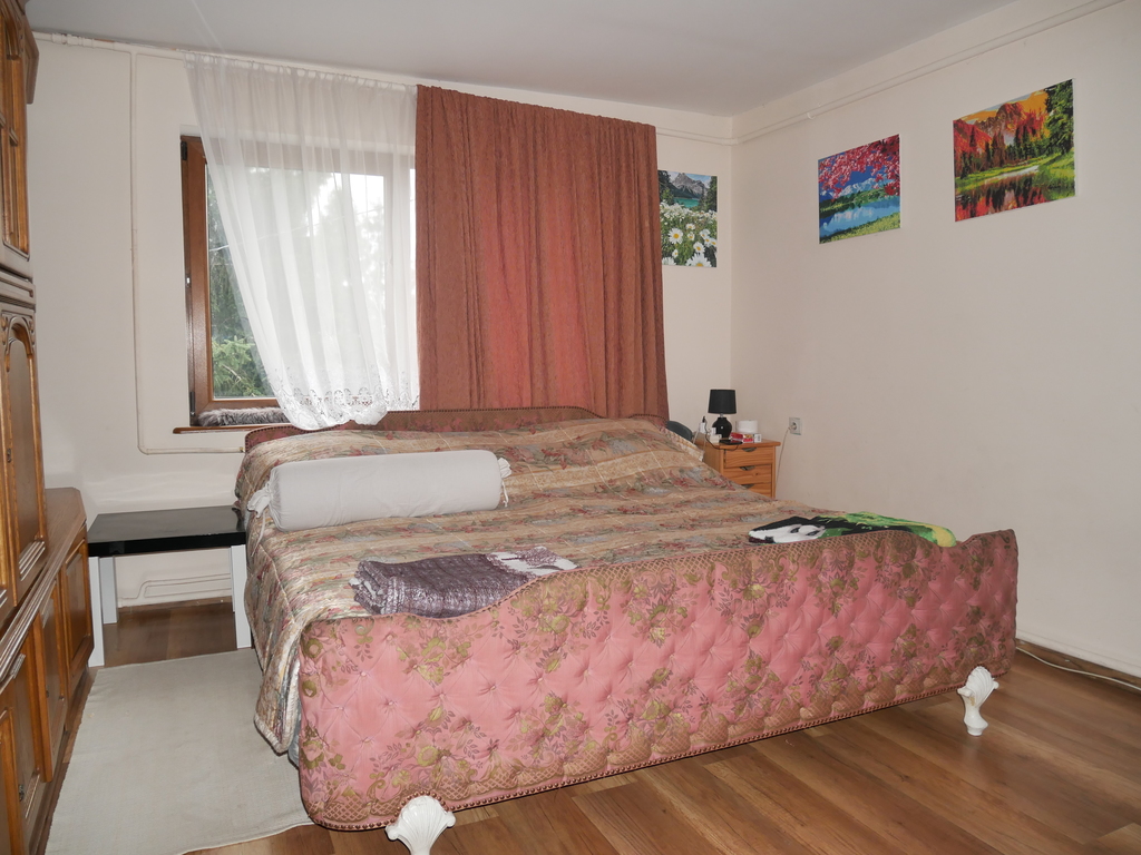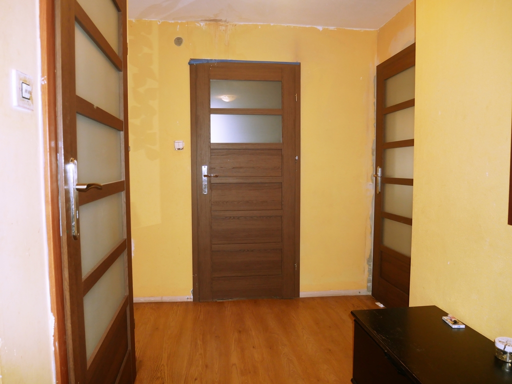 - Pierwsze piętro - trzy pokoje, kuchnia, łazienka, przedpokój, komórka.