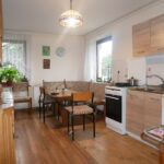 - Podłogi w budynku mieszkalnym na parterze i w łazience, na pierwszym piętrze płytki, w pozostałych pomieszczeniach na piętrze panele.
