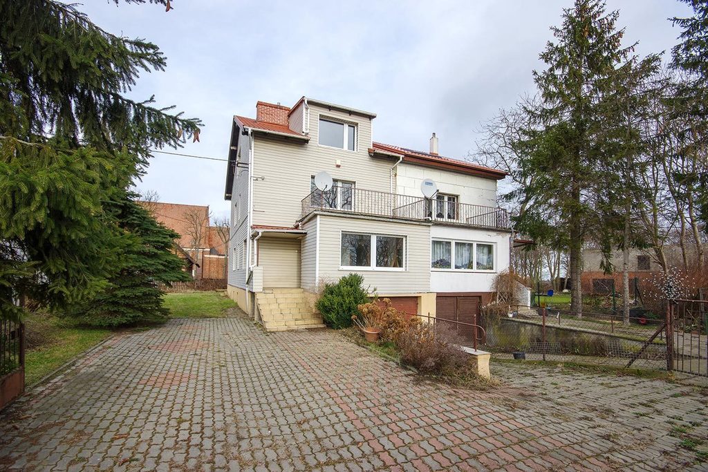 Atrakcyjny, dom w zabudowie bliźniaczej z ogrodem oraz budynkiem gospodarczym z dwoma garażami - Miłobądz ul. Pamięci Narodowej