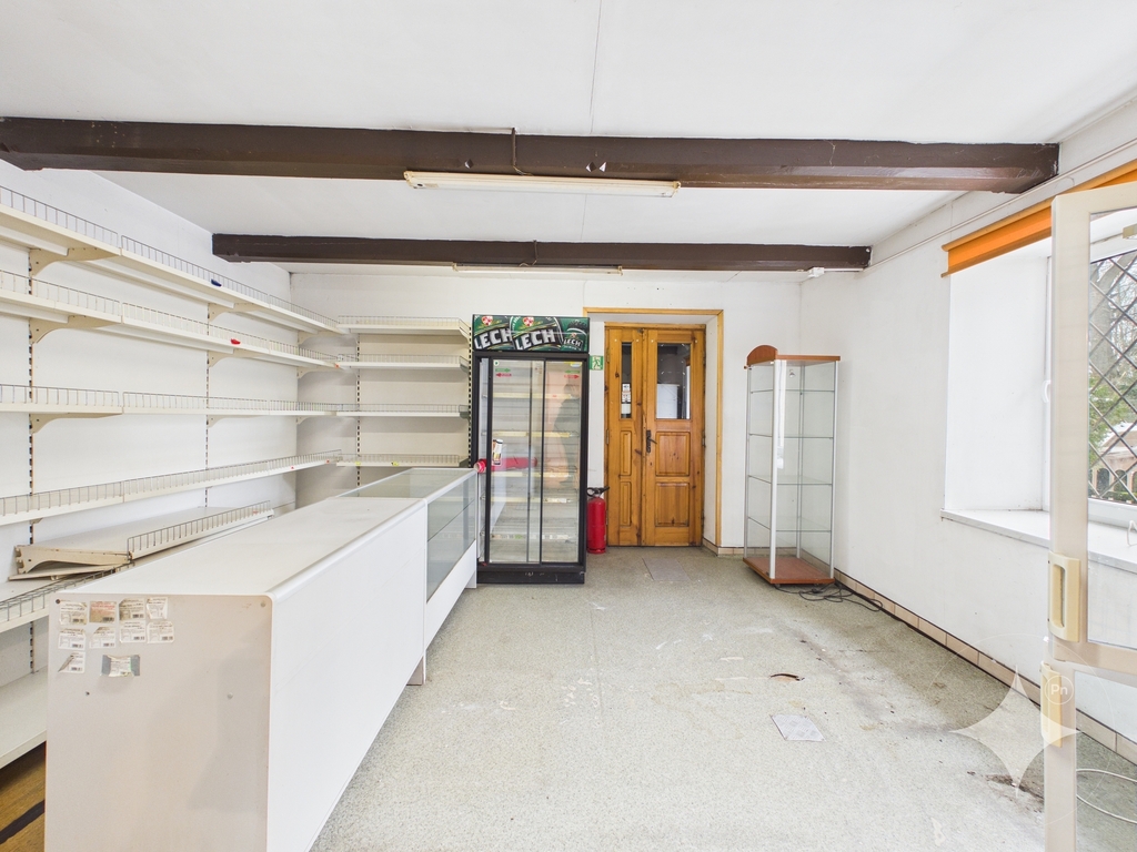 Na parterze znajdują się 4 pokoje, kuchnia, korytarz, 2 łazienki, osobne WC oraz lokal handlowy z osobnym wejściem.