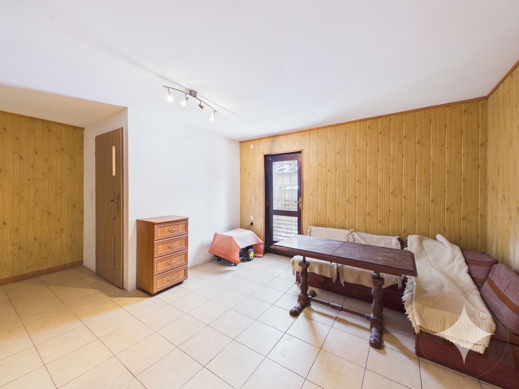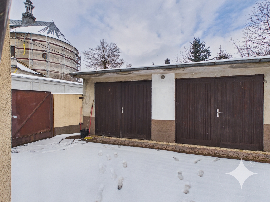 Do budynku przylega murowane pomieszczenie gospodarcze.