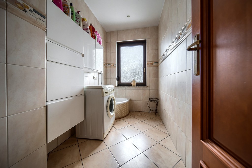 - pomieszczenia gospodarczego/kotłowni z wyjściem od strony ogrodu (pow. po podłodze 5,61 m.kw.)