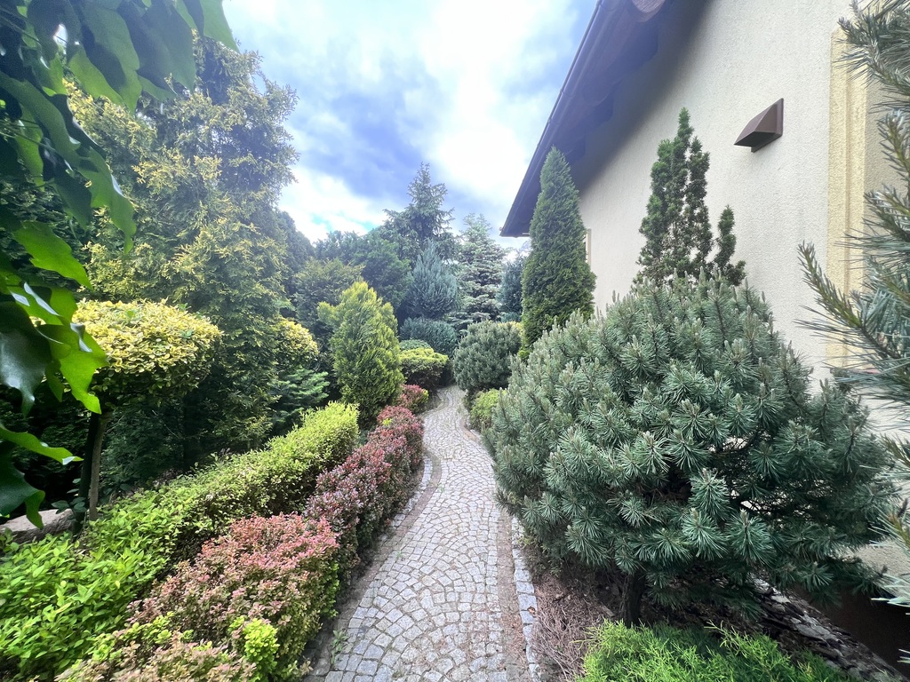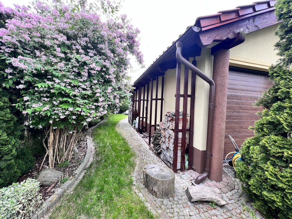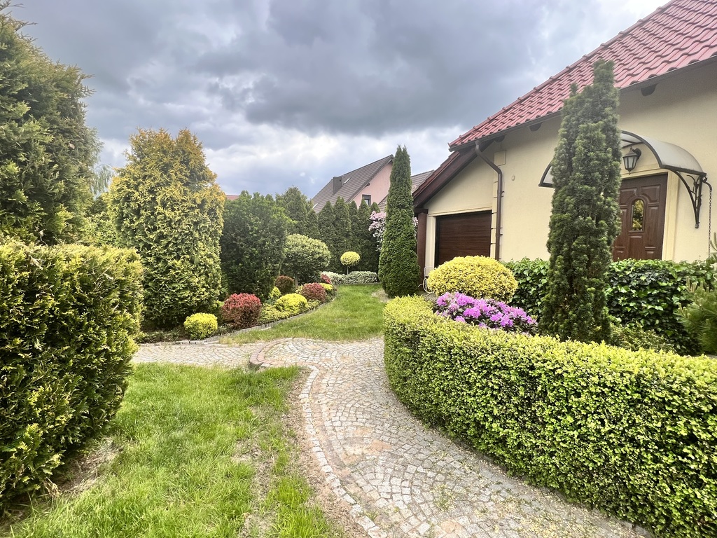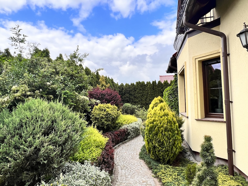 - ogród pięknie zagospodarowany różnego rodzaju nasadzeniami drzew i krzewów (izolacja od sąsiadów wysokimi tujami co przekłada się na dużo prywatności);