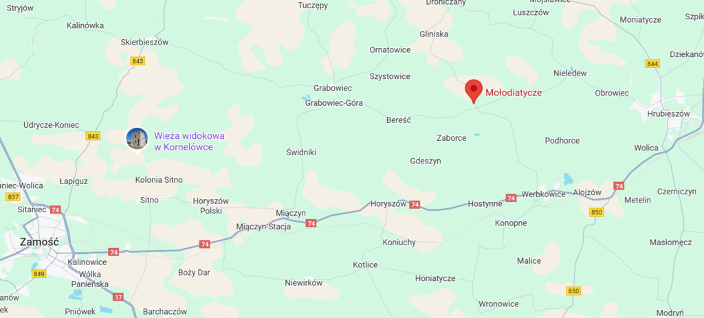 • 33 km (ok. 40 min) do Zamościa — piękne Stare Miasto, kultura, edukacja