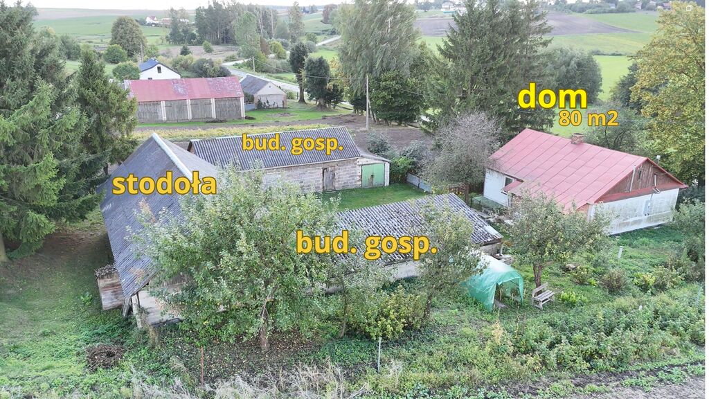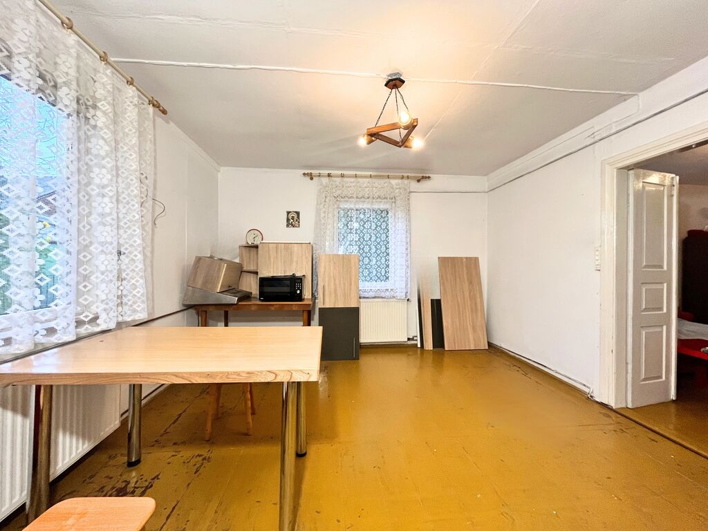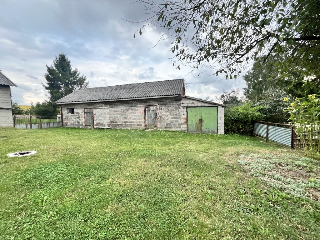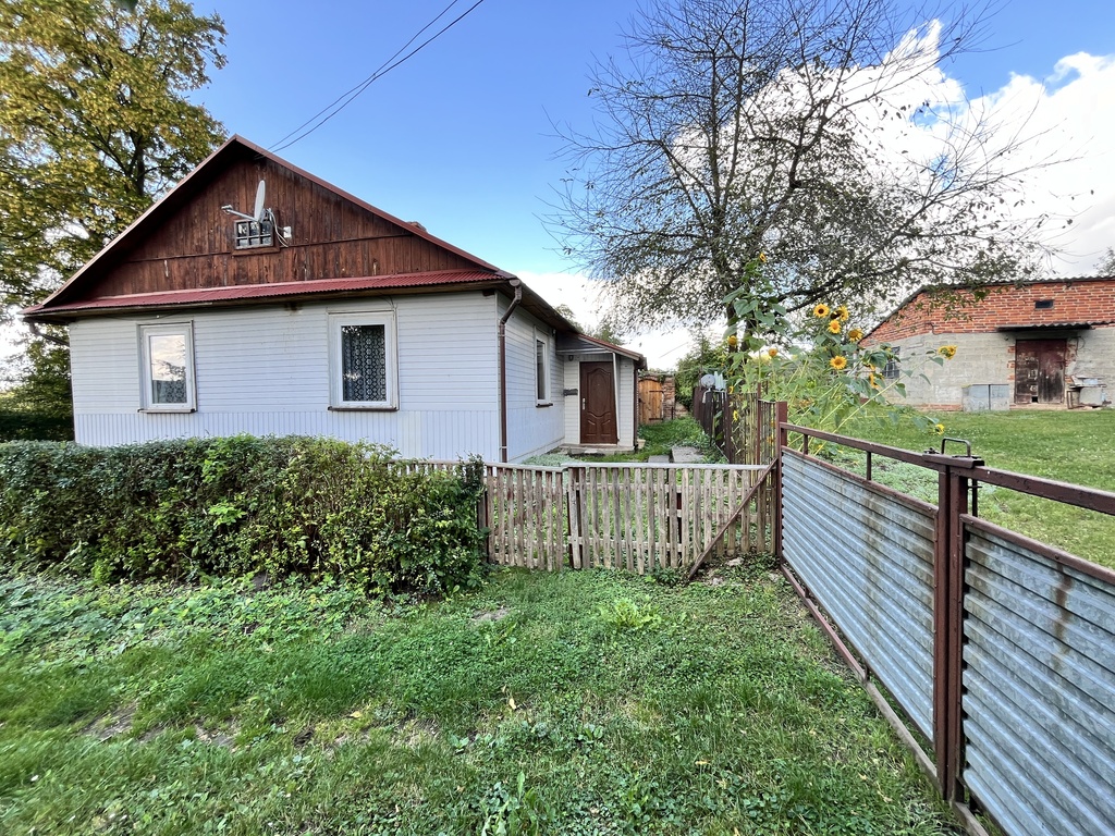 Parterowy, drewniany dom o powierzchni ok. 80 m² — przestronny i bezpośrednio gotowy do zamieszkania. Dom z 1955 roku, po remoncie: nowa instalacja elektryczna, okna, dach z blachy w dobrym stanie, wymieniono piec CO oraz ocieplono strop wełną mineralną.