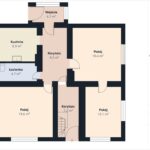 Parter:  wiatrołap, kuchnia, 3 pokoje, łazienka, korytarz,