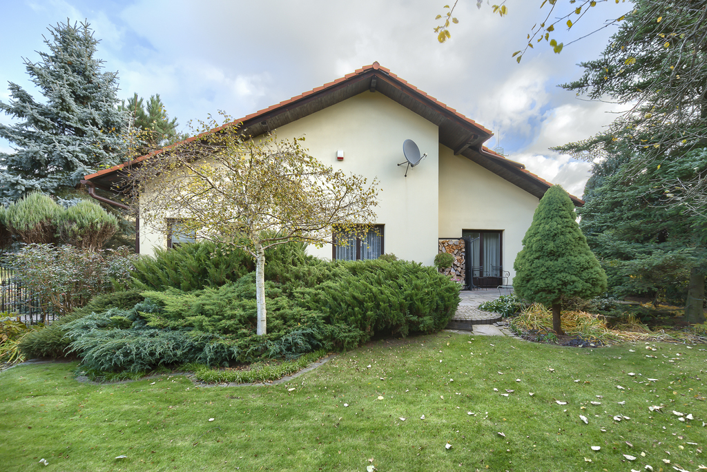 Dom posadowiony na działce o pow. 1200m2 zagospodarowanej jako piękny ogród, ogrodzonej elementami ręcznie kutymi.