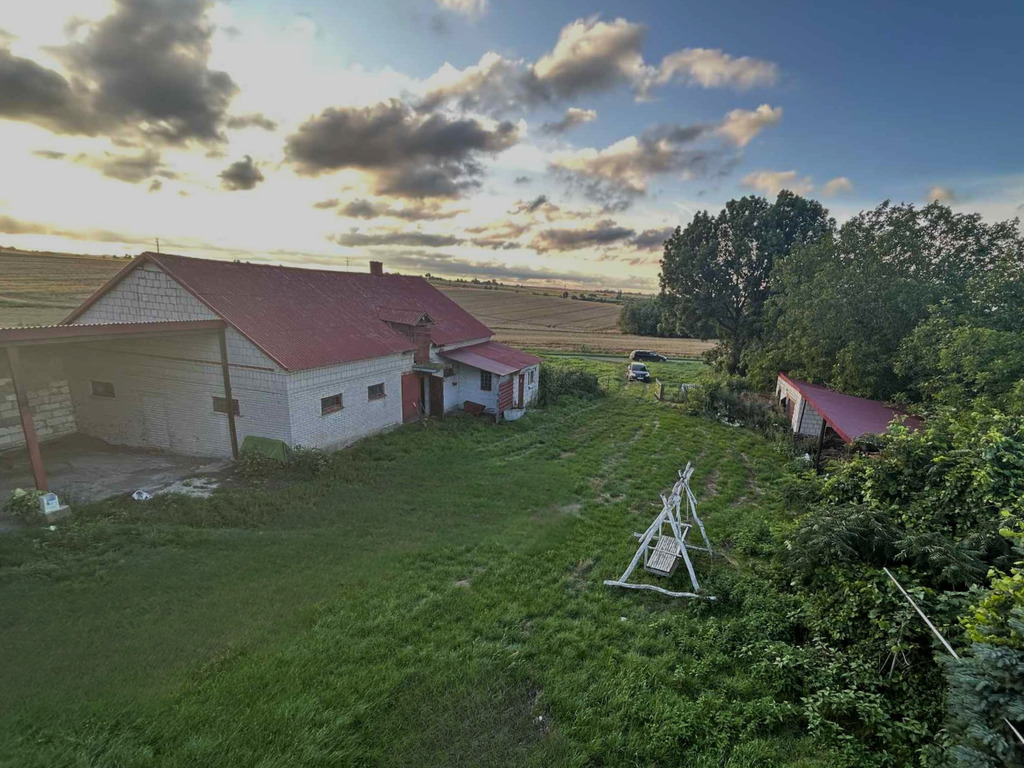 W skład oferty wchodzi dom jednorodzinny o trzech kondygnacjach, trzy budynki gospodarcze, altana oraz grunty orne i łąki o łącznej powierzchni niespełna 9,5 ha.