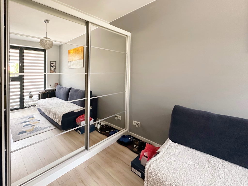 - pokój dzienny z aneksem kuchennym oraz wyjściem na ogródek.