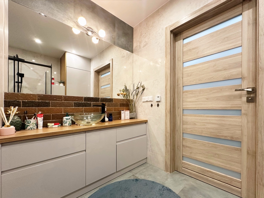 Powierzchnia użytkowa wynosi 80,65 metrów kwadratowych, dodatkowo zyskujemy ok 40m2 powierzchni poddasza do zagospodarowania jako biuro/garderobę/schowek.