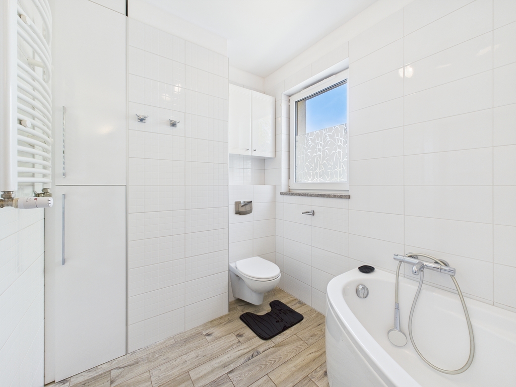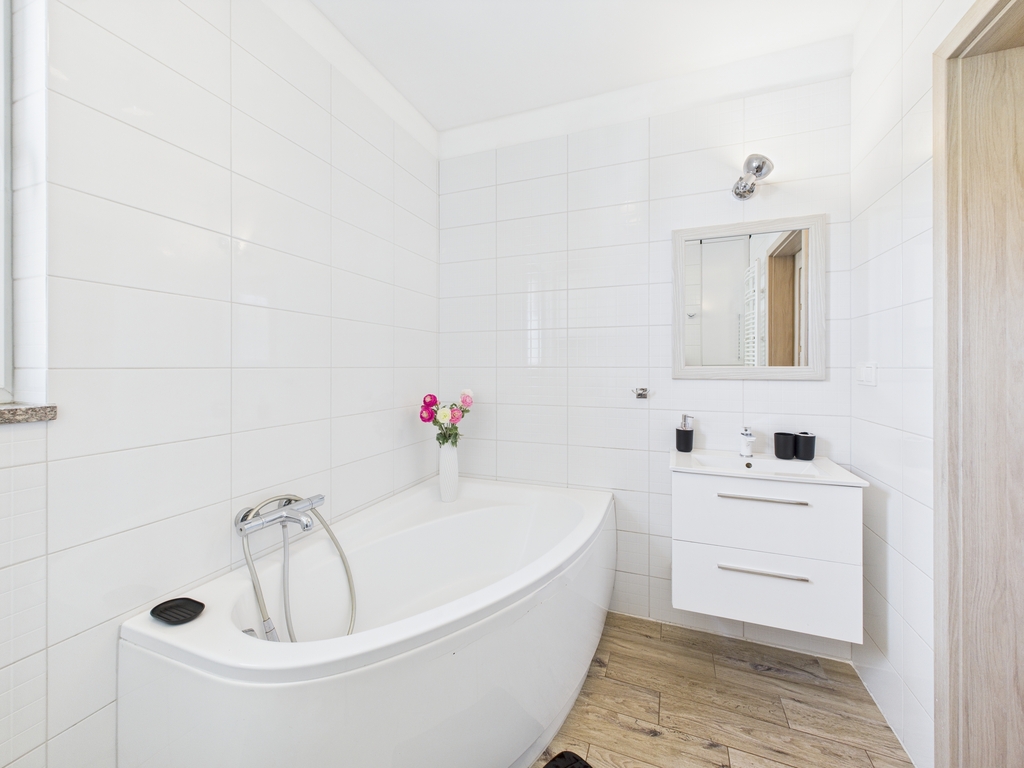 • Ogrzewanie: gazowe, podłogowe w łazienkach + kominek w salonie.