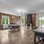 Ogrzewanie zapewnia piec na ekogroszek oraz kominek, co pozwala na optymalizację kosztów. Dodatkowym atutem jest przydomowa oczyszczalnia ścieków, znacząco obniżająca rachunki za wodę.